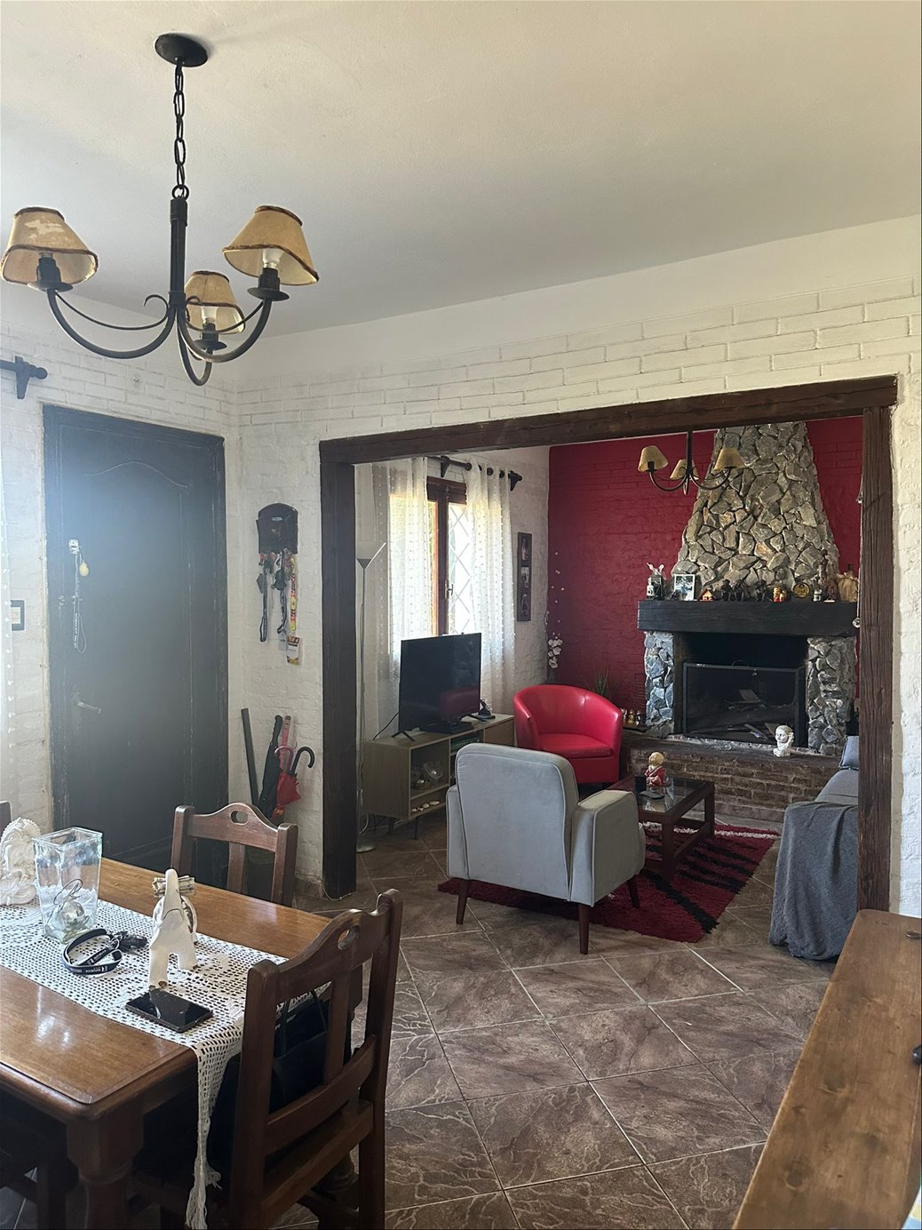 - Living comedor con estufa a leña y A/A